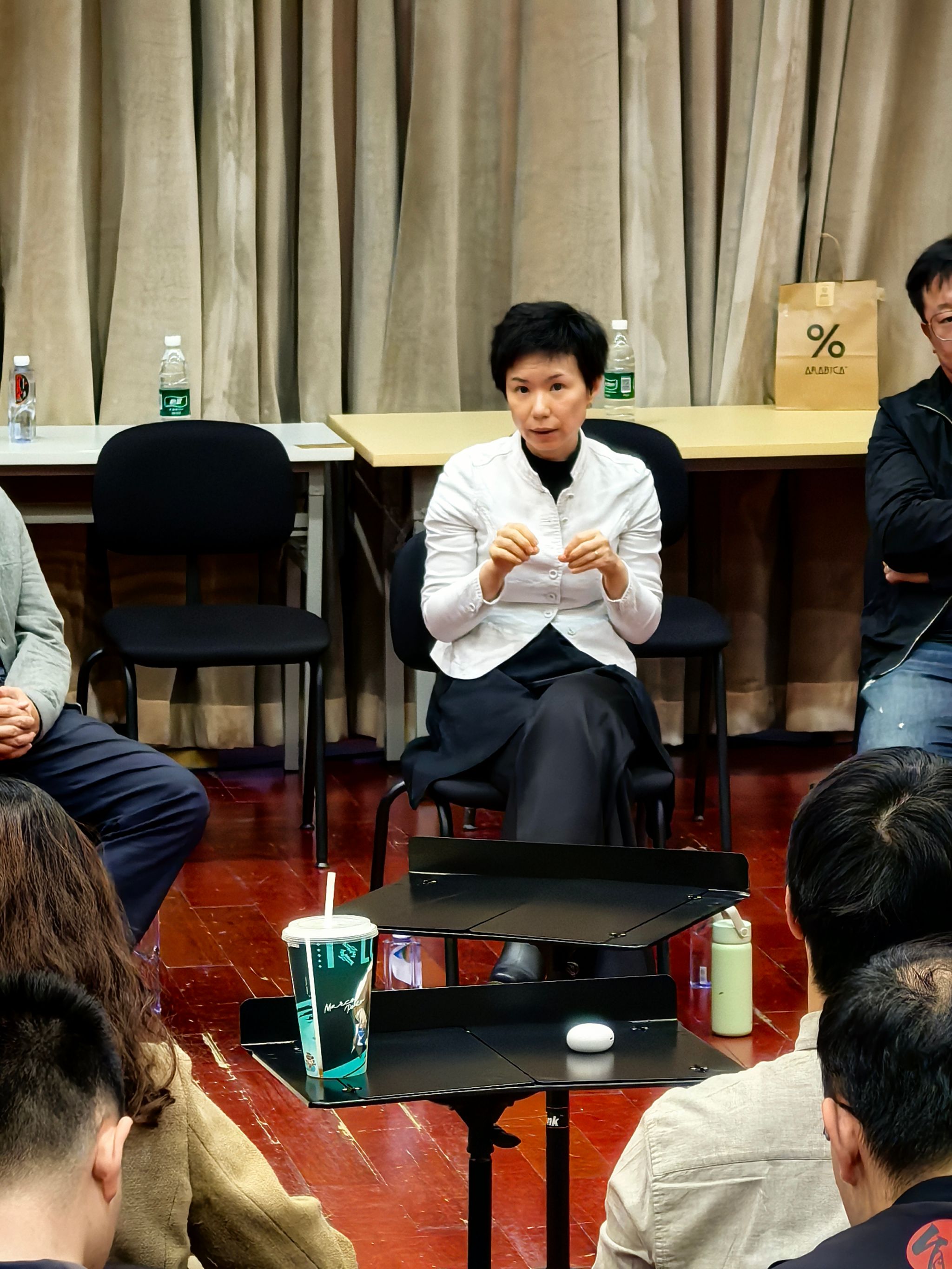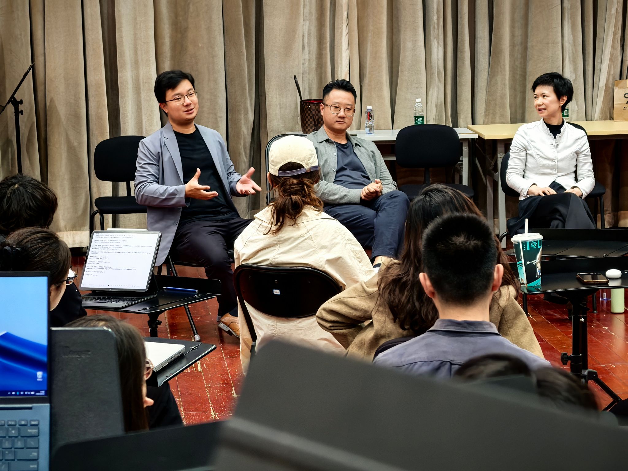 活动在形式安排上进行了创新:学生置身于乐团排练厅,位于演奏员席位,而指挥家与乐团首席则位于台下。这一布局打破了传统课堂的物理与心理界限,从形式上促进师生之间、创作者与表演者之间进行更为平等对话。
