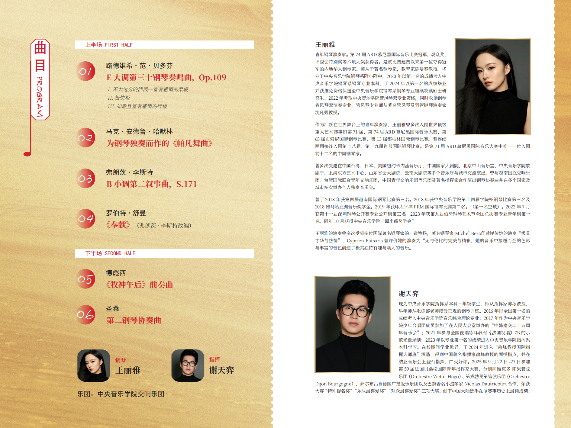 首先,我感谢我的恩师陈冰教授,以及指挥系的悉心培养。是您们的严格指导与无私传授,为我奠定了坚实的艺术根基,让我有能力与信心驾驭今晚的音乐会。