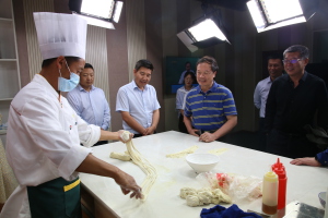 在化隆智慧拉面(特色产业)信息化服务中心,赵旻书记参观了拉面产业政务服务、拉面外出务工人员返乡创业、化隆拉面品牌、拉面投资、拉面公益、拉面讲堂等13类服务模块。工作人员介绍到,拉面经济已成为化隆县农民群众的“脱贫经济”和“致富经济”,目前共有“拉面村”231村近10万余人(占全县总人口的三分之一,占全县劳动力的60%左右)在全国271个大中城市共开办拉面店14430家,总产值近100亿元(拉面收入占农民人均纯收入的54%),化隆县累计脱贫的13万人口中7万人是通过拉面脱贫的。我校也正在学生食堂积极引进化隆拉面窗口。