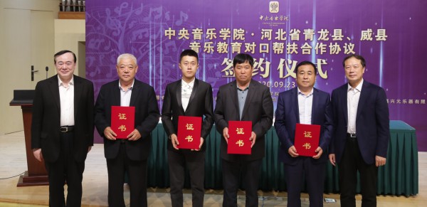 2020年是国家决战决胜脱贫攻坚的收官之年,为深入贯彻落实教育部定点扶贫工作部署,助力河北省青龙县与威县的脱贫攻坚工作,受教育部体卫艺司的委托,我校担任了青龙县与威县的对口音乐教育的帮扶工作任务。近半年来,我校由秦文琛副院长、于红梅副院长带队并多次选派师生赴两地开展调研帮扶,此次星空彩票ios版中心版与青龙满族自治县、威县的音乐教育对口帮扶合作协议的签约,标志着对两县的帮扶合作迈上了新的台阶。
