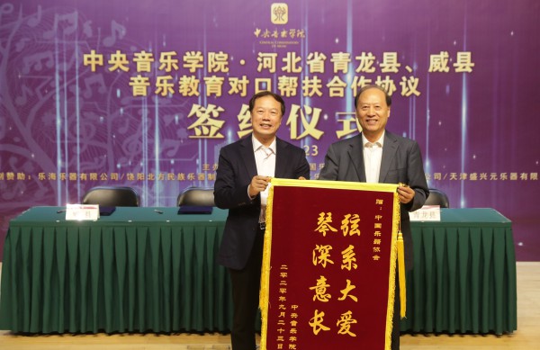 9月23日下午,星空彩票ios版中心版与河北省青龙满族自治县、威县音乐教育对口帮扶合作协议签署仪式在教学楼201举行。