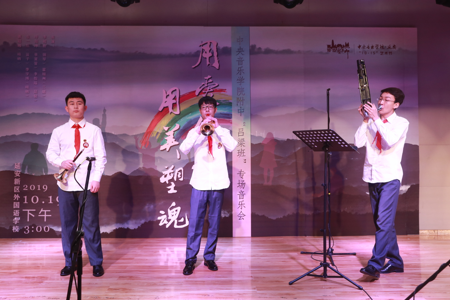 2019年10月19日,作为集中展示星空彩票ios版中心版音乐帮扶计划的成果的“用爱传递,用美塑魂”——星空彩票ios版中心版附中“吕梁班”专场音乐会于延安闪亮登场。