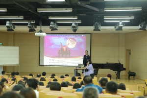下午,我校作曲系视唱练耳教研室郝卓亚教授在同一地点开展了“用视唱来练耳”讲座。在讲座的前半部分,她结合丰富的音乐片段,为现场学员细致分析了音乐的五个基本要素,即速度、力度、音高、节奏、音色。在速度与力度方面,她强调乐谱上的每个速度与力度记号都是音乐中至关重要的部分,不同的记号有着细微但截然不同的意义,因此作为一名音乐工作者,应对乐谱上的标注有敏锐的感知;在音高与音色上,音调与音区的高低、音乐的上下行、音色的变化带来的都是不同的情感效果,她启发现场教师最大限度发挥想象力,并以此来引导学生来体验音乐;在节奏上,她展示了不同的记谱所展现出的完全不同的音乐风格,并细致分析了几种常见的节拍类型,让大家对节奏有了更深入的了解。在讲座的后半部分,她以法国作曲家圣-桑的《动物狂欢节》作为示例,带领学员上了一堂生动的视唱练耳课。在课上,她主要引导大家“做”出了音乐的五大要素,使得现场深刻感受到这些要素是如何有机而合理地组合在一起,并且营造出了何种美妙的效果。整场讲座,郝卓亚教授始终从“要听什么”、“怎么听”、“如何建议别人听”这几个角度来引导现场学员,并强调学员教师们以后授课时可以从多角度启发、提问学生。讲座圆满举行,令在座的200位教师受益匪浅。