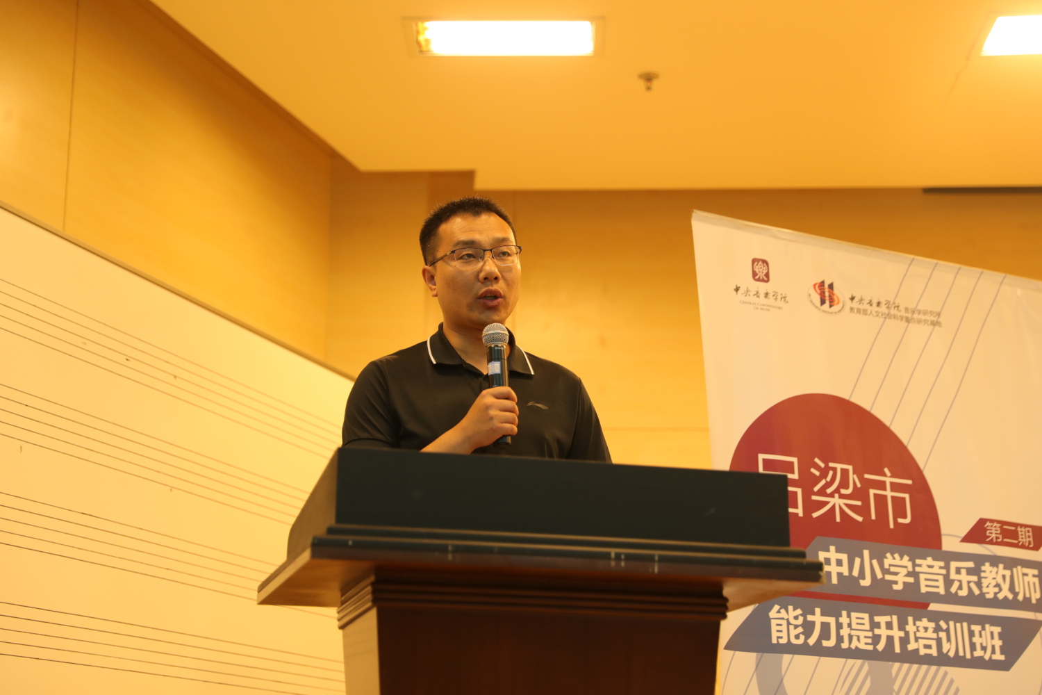 我校音乐学研究所所长贾国平老师作总结发言,他表示这次活动的成功举办非常难得,为这次活动做出贡献的人员表示感谢。为期一周的培训课程,学员们认真听讲、勤做笔记,积极互动,及时反思,圆满完成所有课程,对他们表示祝贺。