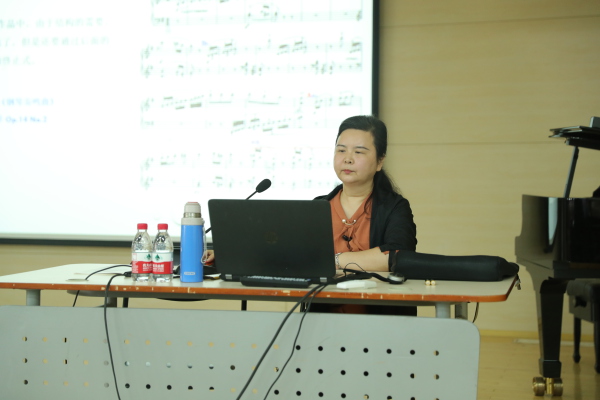 浩瀚的音乐宇宙宛若灿烂的星空,音乐的理论就如天体星系一样存在着复杂多变的规律。本堂讲座傅涛涛副教授在通过听力分析和谱面分析的方法带领学员教师认识音乐宇宙中的一些基本规律,例如:音乐的基本表现手段、主题动机的构成、音乐发展所需要的一些基本手法以及一些小型曲式的基本写作技术与内容,再配合傅涛涛教授的耐心讲解及细致分析,将音乐的基本表现手段与形式的重点内容一一分享给大家,希望学员教师们在今后授课时可以带领课堂上的学生们通过技术的训练从而加深对音乐的了解和认识,能够真正地走进音乐、理解音乐。
