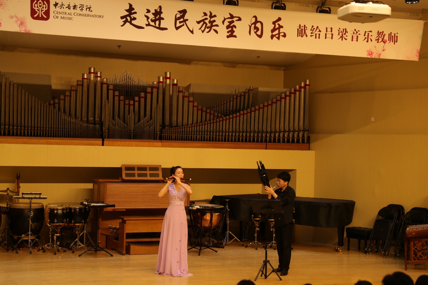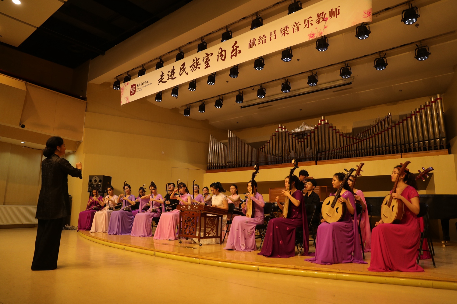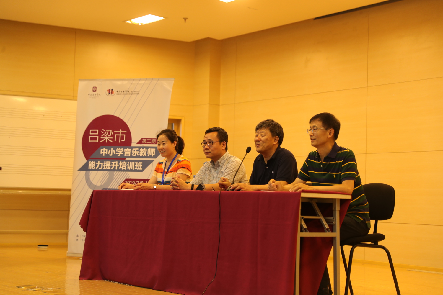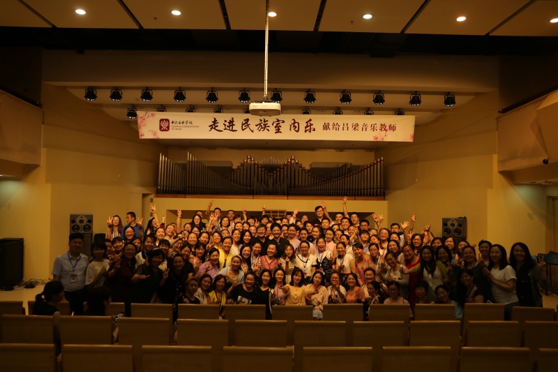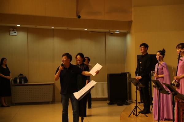 7月12日晚7点,由民族室内乐团为吕梁中小学音乐教师精心准备的“走进民族室内乐——献给吕梁音乐教师”音乐会在教学楼201拉开帷幕,陈冰教授担任指挥。