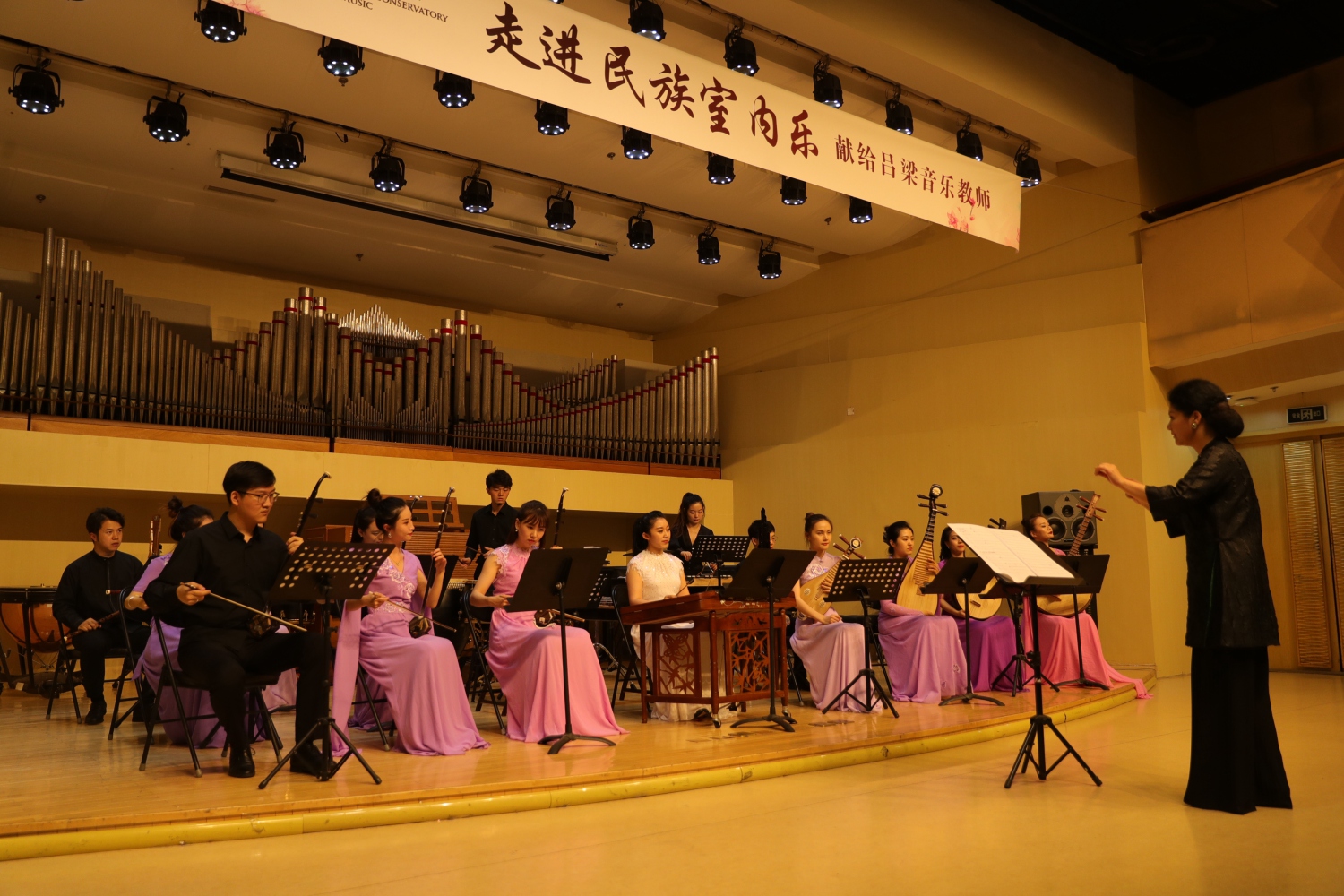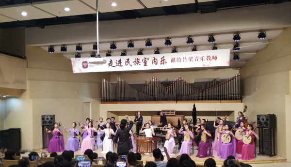 音乐会上既演奏了民族室内乐传统精品力作、又演奏了相关的学术型现代作品,系统介绍了拉弦、弹拨、吹打等一系列民族乐器。音乐会精彩纷呈,乐团富于激情的演奏赢得了吕梁音乐教师们发自内心的热情掌声。