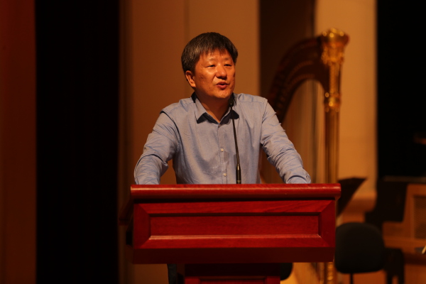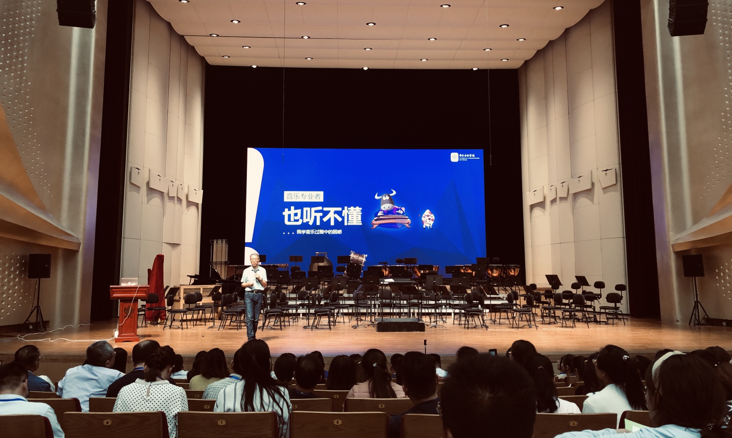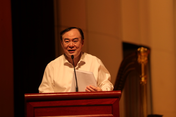 随后,我校周海宏教授在歌剧音乐厅为现场进行了《走进音乐的世界——兼谈艺术的意义与教育的策略》讲座。他首先引导大家走出必须“听懂音乐”的误区,认为音乐作为听觉艺术,其本身并不能直接传达视觉形象或思想观念,因此“听懂”并非欣赏音乐的基本方式,欣赏音乐的基本方式应为感受纯听觉的美。同时他强调,想要获得幸福与成功的生活,除了锻炼理性能力,还必须注重审美能力与感性素质的培养,而艺术教育在这其中有着不可替代的重要性。周海宏教授以生动幽默的语言与丰富的音视频实例,让现场气氛愉悦、沸腾。