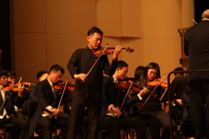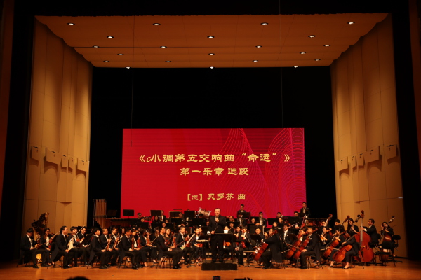 开班仪式结束后,随着激昂的《义勇军进行曲》响起,俞峰院长携星空彩票ios版中心版交响乐团及陈曦、宋元明、王传越等一众音乐家,以讲解、演出相结合的方式,给现场的吕梁学员带来了一堂生动的音乐欣赏课。在这堂课上,俞峰院长介绍了横跨交响乐、协奏曲、歌剧、舞剧等多种体裁的10首中外经典音乐作品,包括我国第一部民族歌剧《白毛女》、小提琴协奏曲《梁山伯与祝英台》、民族芭蕾舞剧《红色娘子军》、贝多芬《c小调第五交响曲“命运”》、歌剧《图兰朵》等,并结合党的文艺理论、大量中西音乐史料进行了细致的讲解。俞院长的讲解与音乐家们激情澎湃、震撼人心的音乐深深感染着在座的200多位学员。最后俞峰院长指挥全体演职人员与学员,在《我和我的祖国》的歌声中结束了这堂音乐欣赏课。