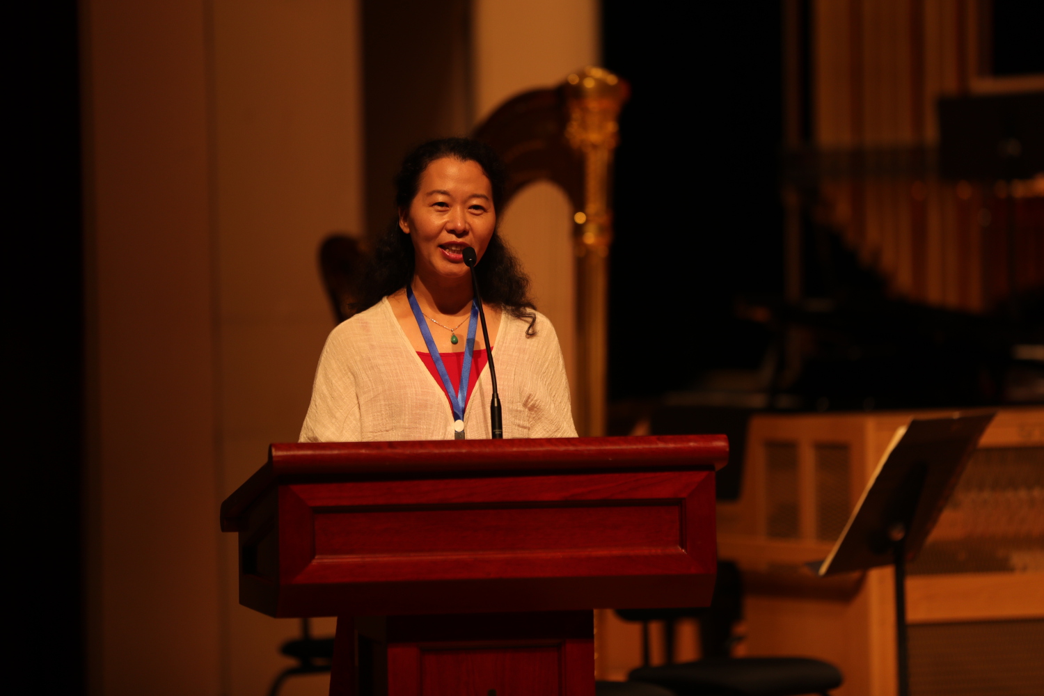 学员代表贾嘉宁老师难掩激动之情,她代表吕梁教师发表感言。大家一定会珍惜这难得宝贵的学习机会!来到中国最高音乐学府学习,在高端的音乐平台上吸取营养,壮实业务水平、开阔艺术事业,一定把学到的点点滴滴都应用到日常的教学实践中,做中小学生“美”的引路人,为美育工作作出自己的贡献!