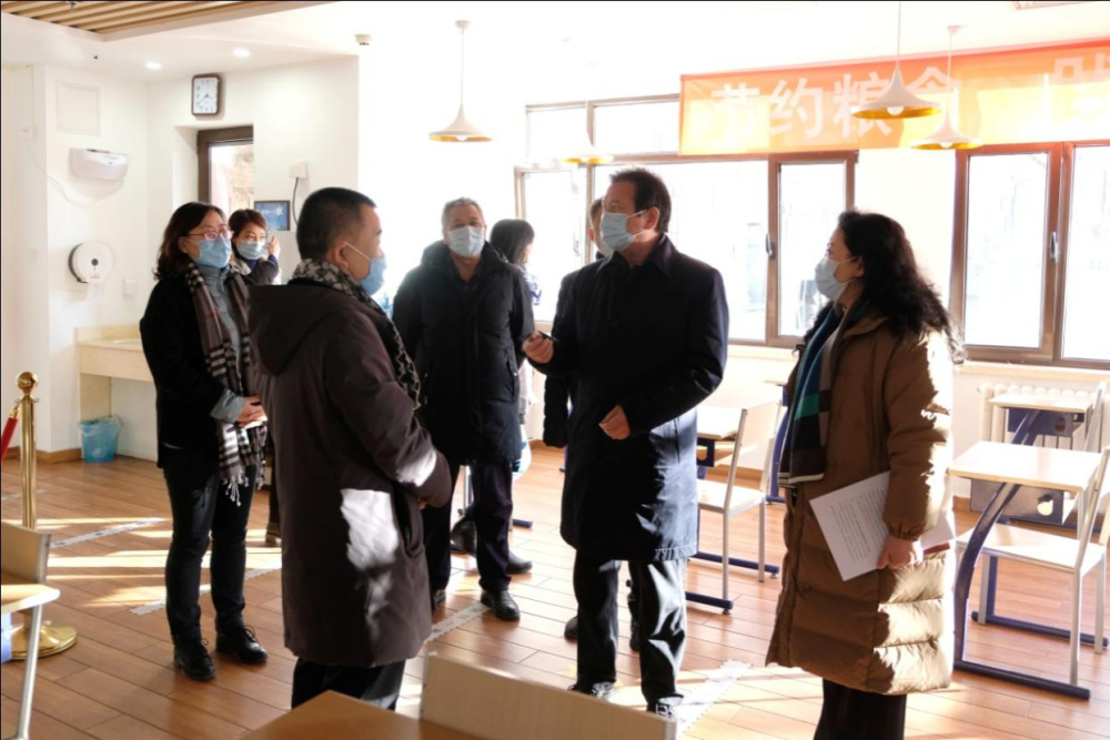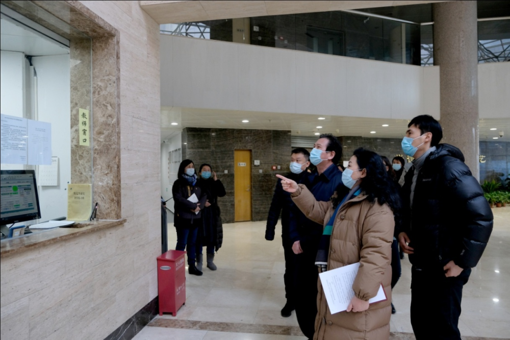 2021年1月5日下午,北京市教育委员会一级巡视员黄侃莅临附中检查疫情防控工作。星空彩票ios版中心版副院长肖学俊、附中校长娜木拉、副校长金京春、魏宇红以及校办、学生科、教务科、校管科等科室负责人陪同检查。