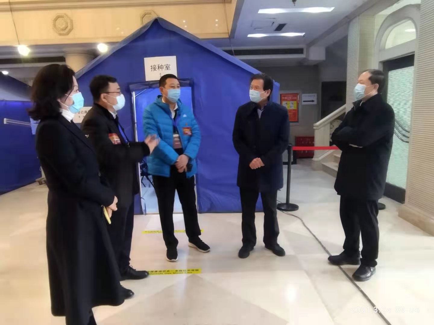 2021年3月24日上午,北京市教委一级巡视员黄侃同志在市教委职业教育与成人教育处陈敬文调研员的陪同下,来我校督查师生新冠疫苗接种工作开展情况,现场查看了学校琴房楼友谊厅疫苗接种现场,对咨询、登记、接种、留观、应急处置等整个工作流程进行了检查,并听取了学校党委书记赵旻同志对我校疫苗接种推进工作的介绍。