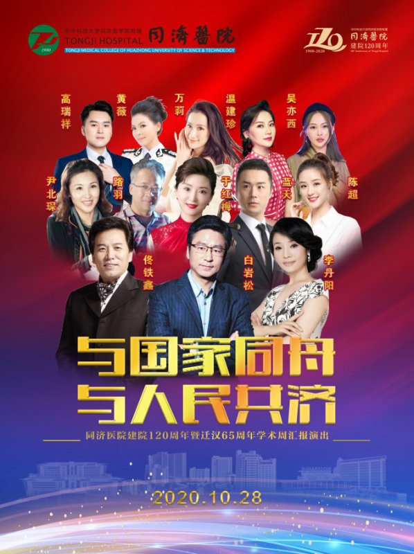 我校受华中科技大学同济医学院附属同济医院邀请,10月28日,由副院长于红梅教授带队,率领我校师生赴湖北武汉琴台大剧院参加《“与国家同舟 与人民共济”同济医院建院120周年暨迁汉65周年学术周汇报演出》。当日来自全国各地的援鄂医疗队的战疫英雄重聚武汉,于红梅教授代表星空彩票ios版中心版向同济医院建院120周年致以热烈祝贺,并向同济医院等所有医务工作者致以崇高的敬意和衷心的祝福。国家卫健委副主任、湖北省委常委、省卫健委党组书记王贺胜,湖北省委常委、武汉市委书记王忠林,副省长杨云彦,市委副书记、市长周先旺等出席开幕活动。