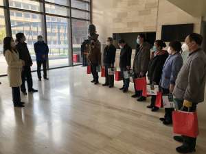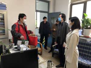 秦文琛、于红梅副院长来到教学楼大厅看望物业员工。对校园建设和管理处教职工和物业员工在实行校园封闭管控下克服困难坚守岗位,保障校园电力、维修、供暖、保洁等方面工作的平稳运行表示慰问。