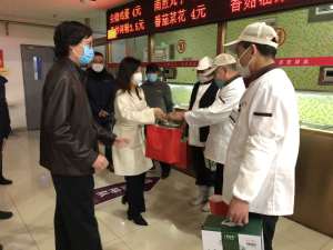 随后校领导来到学生公寓和基本伙,看望了为学生服务的宿管人员和保障饮食的食堂师傅们,对宿管人员在疫情期间积极为学生邮寄资料保障毕业生论文撰写和食堂师傅们在特殊时期保障饮食供应等贴心工作表示感谢。抗疫以来,守候在校园一线岗位上的老师们一直无休,学院领导特别为这些同志们准备了绿茶、VC,还有一些牛奶等慰问品,希望他们能够保重身体!也感谢他们在第一时刻一直战斗到现在,感谢他们为守候学校所做出的贡献。
