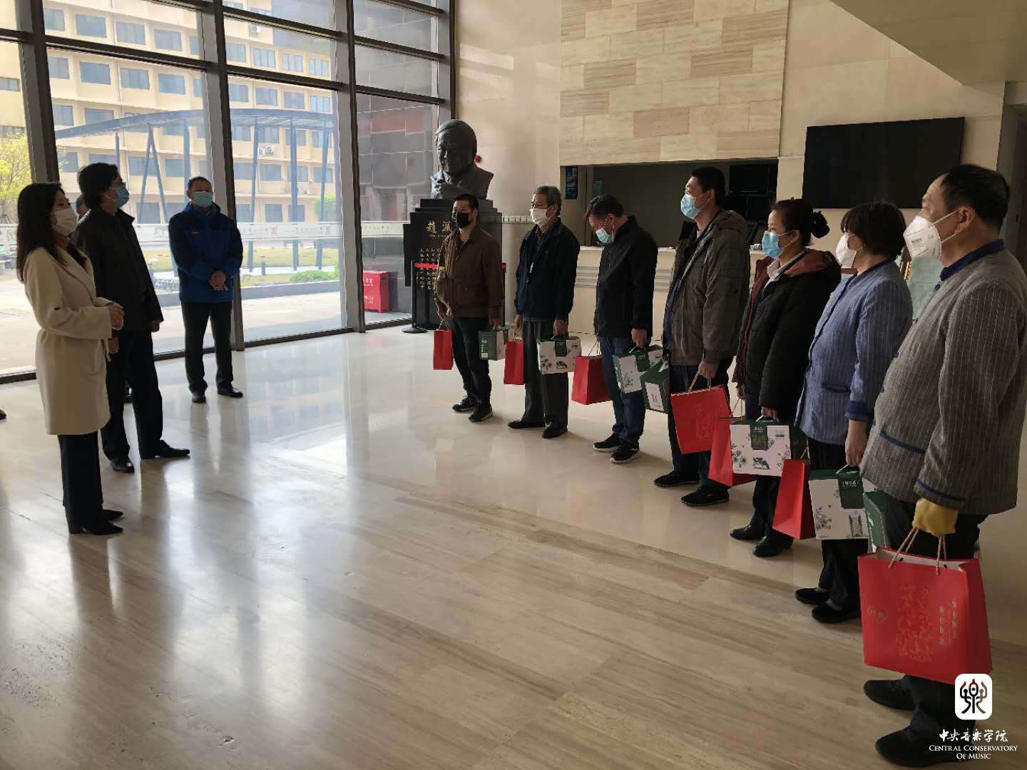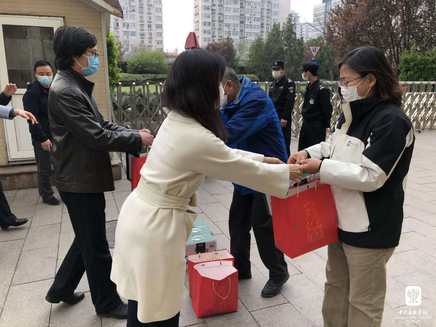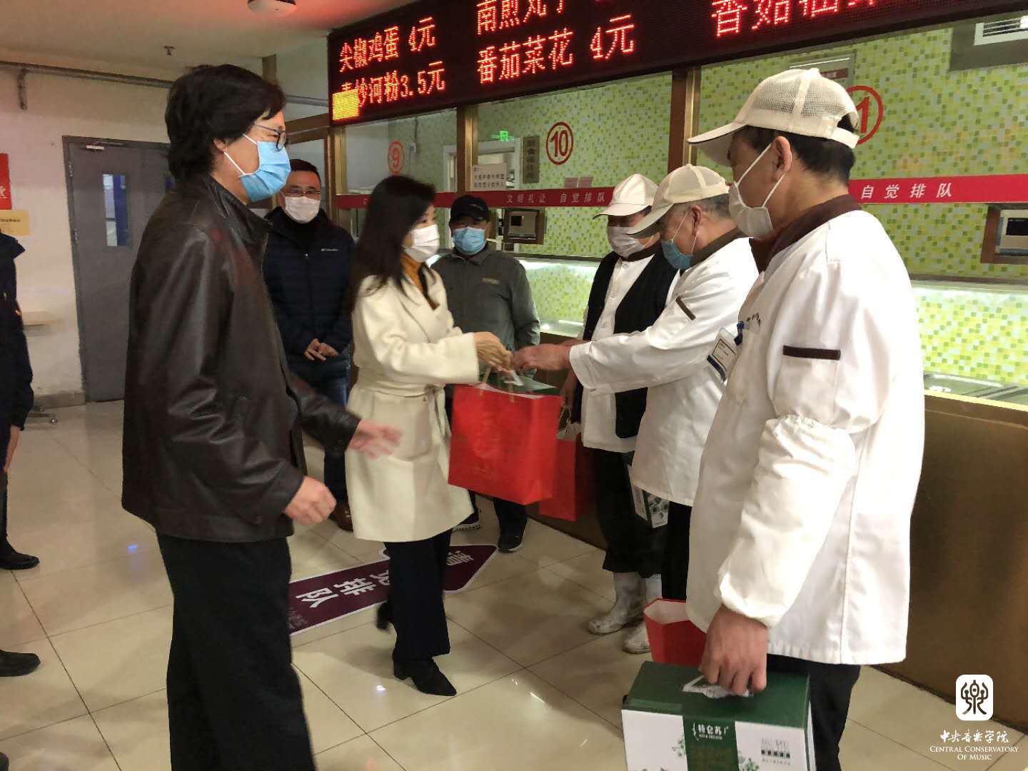 4月9日,秦文琛副院长、于红梅副院长代表学校看望了在学校抗疫一线的保卫和后勤同志,并为他们送上了慰问品。