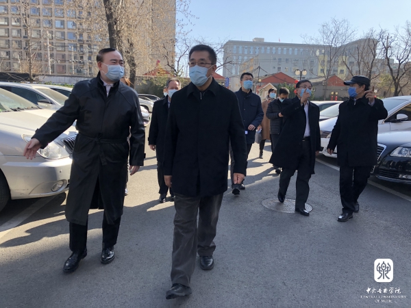 北京市委教育工委办公室副主任汪天逸,北京教育系统疫情防控领导小组驻校联络员孙亚茹,学校党委办公室主任赵晓岩,院长办公室主任王歆,宣传部长刘红柱等随同检查;校园建设与管理处长赵海、副处长赵运生,学生工作部副部长刘兴辰、叶冬梅,教务处长汤琼,国际交流处长陶倩,保卫处长王京超等部门负责同志在岗介绍了防控工作情况。