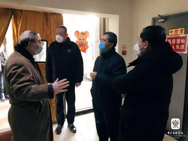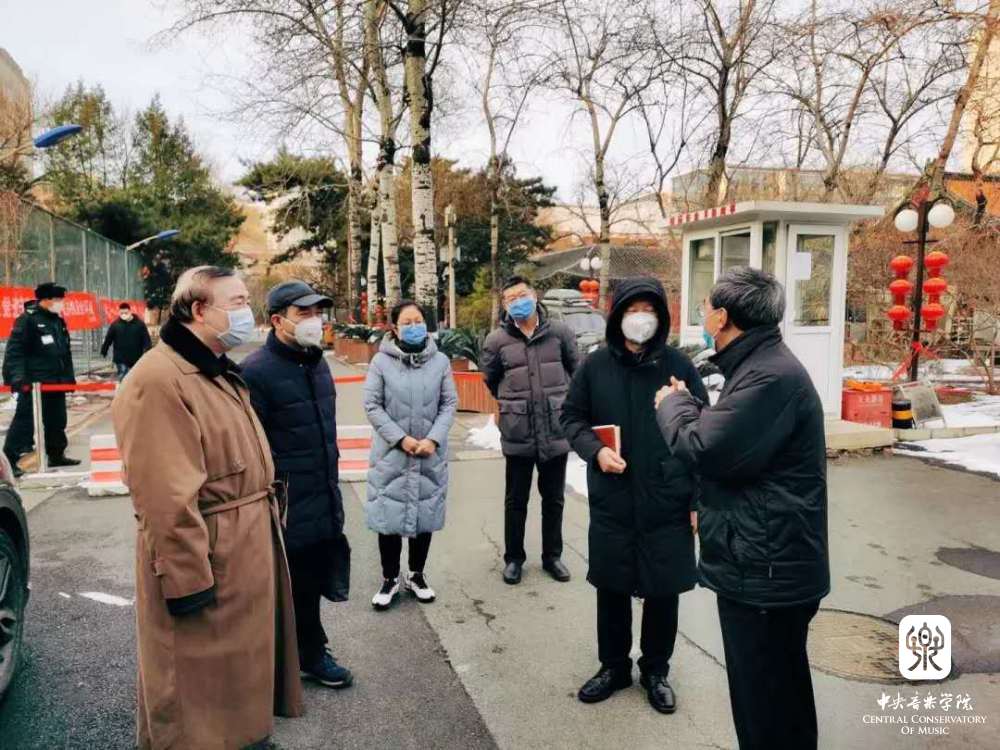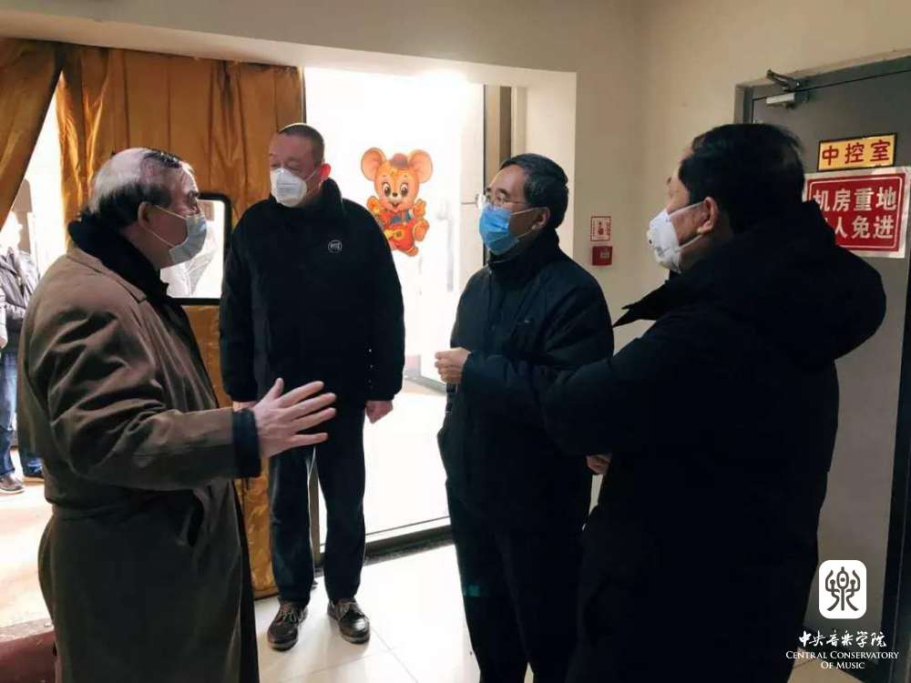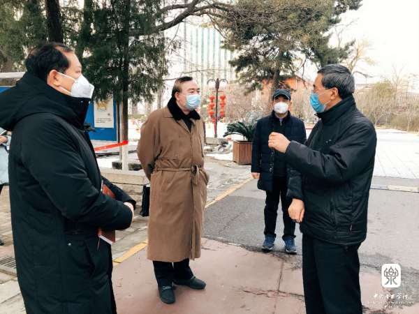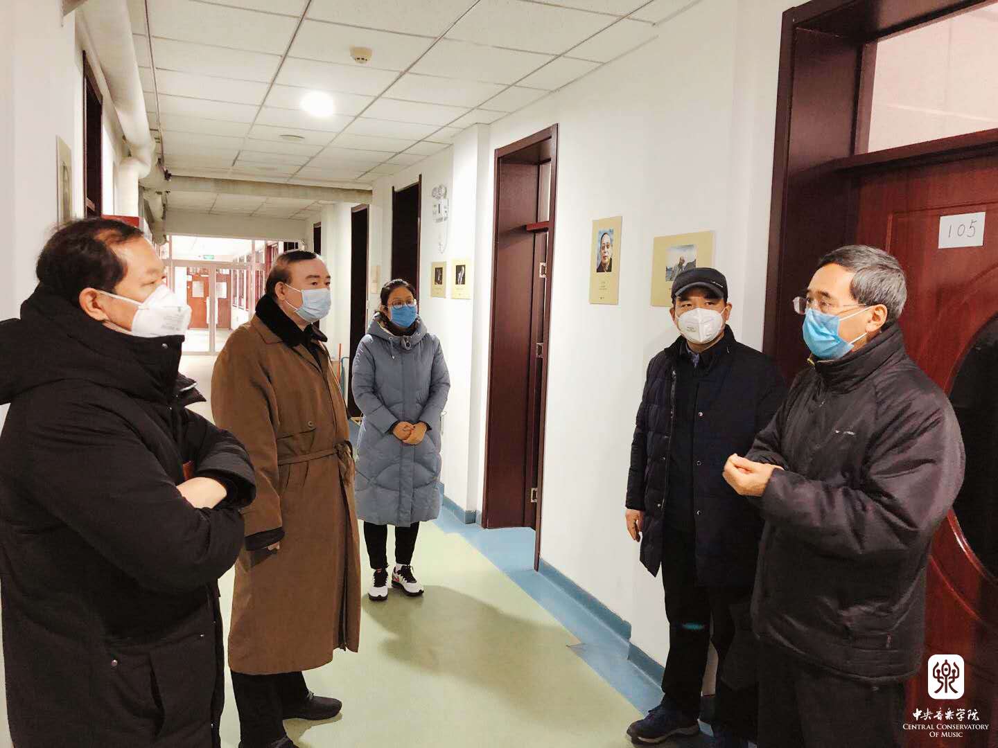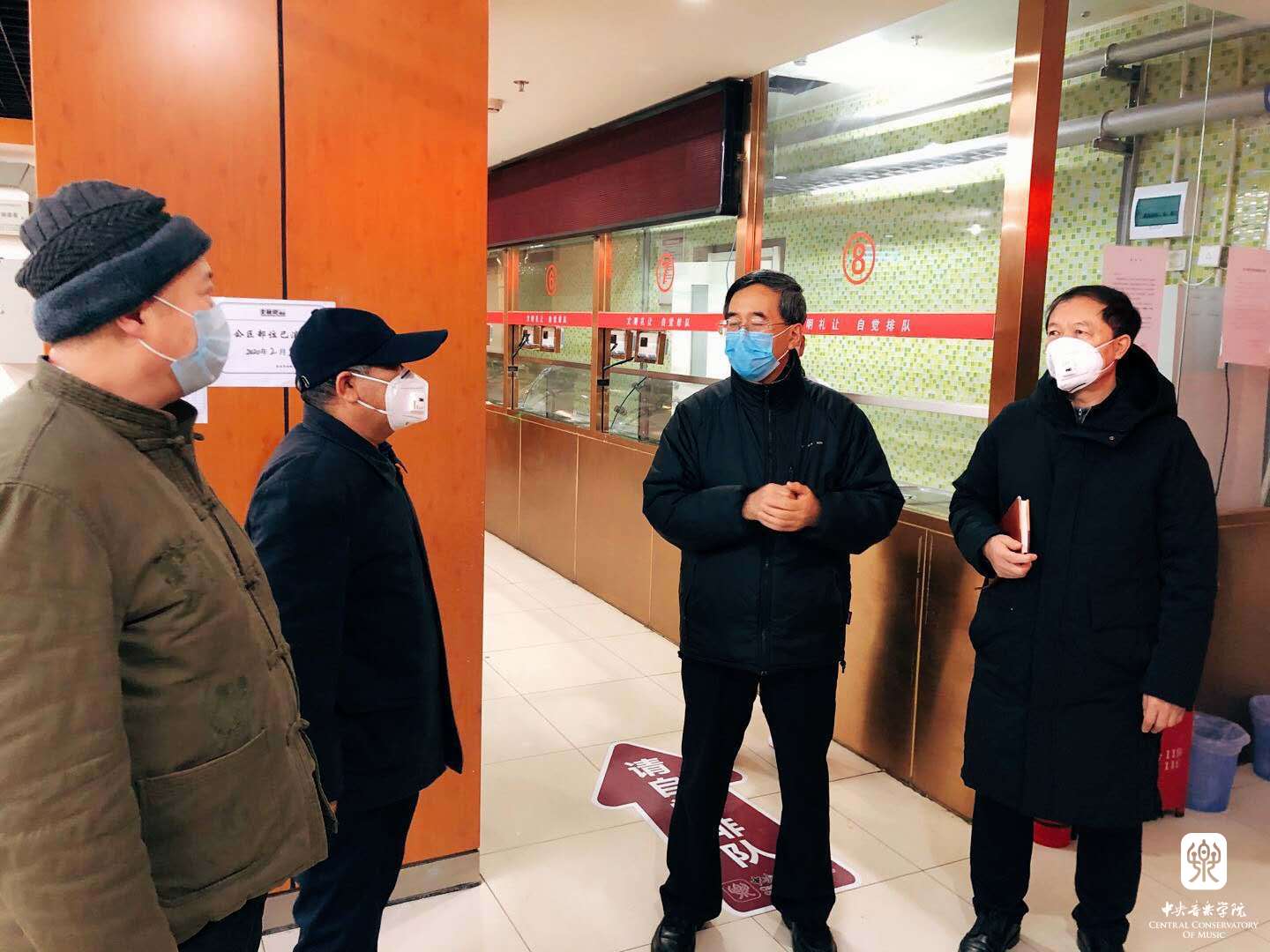 2020年2月8日下午14:00,北京市教育工委召开第三次视频工作会议,传达党中央国务院、教育部最新精神和要求,对北京市下一步新型冠状病毒的防控工作进行再部署、再动员。下午16时,北京市委教育工委常务副书记郑吉春、副书记李军锋到我校检查指导疫情防控工作,市教委派驻我校联络员孙亚茹陪同。赵旻书记、俞峰院长以及党委办公室主任赵晓岩、院长办公室主任王歆、保卫部处长王京超、校园建设管理处副处长赵运生等汇报相关工作情况。