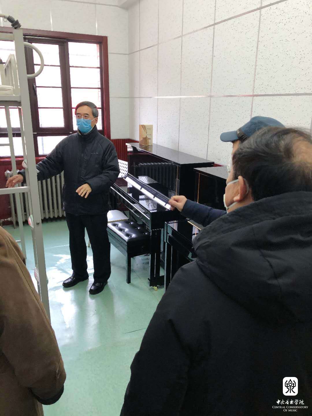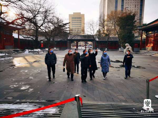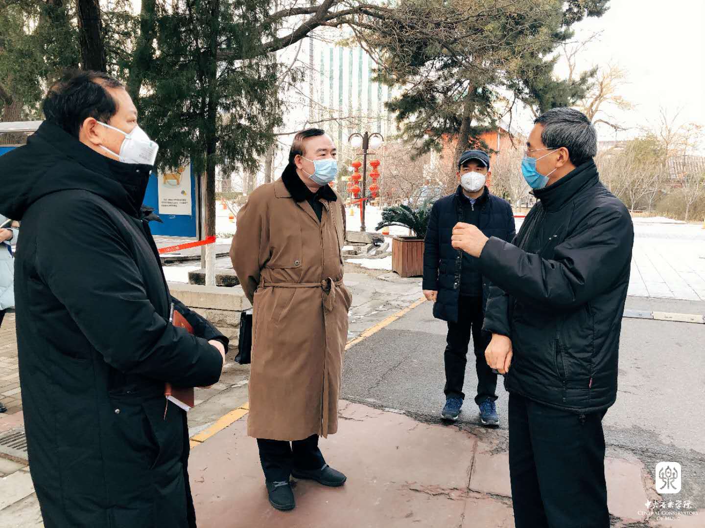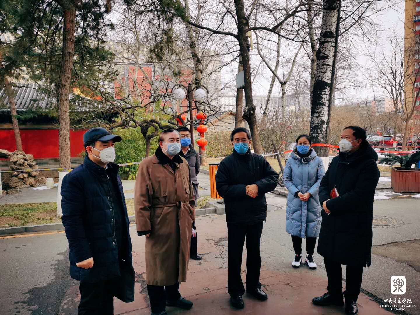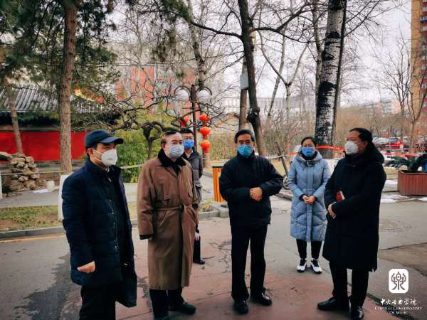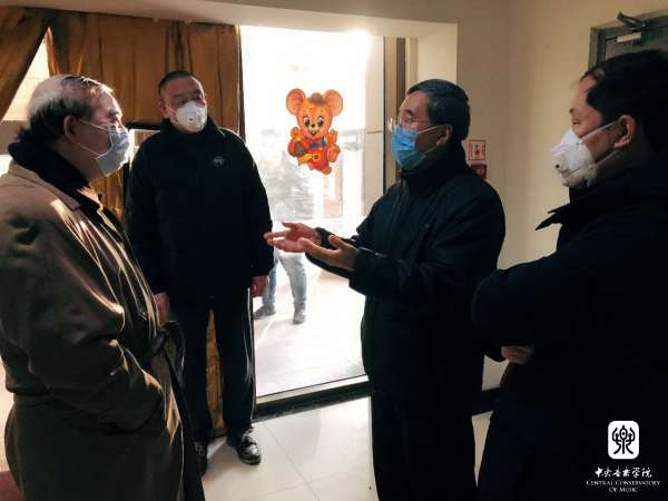 2020年2月8日下午14:00,北京市教育工委召开第三次视频工作会议,传达党中央国务院、教育部最新精神和要求,对北京市下一步新型冠状病毒的防控工作进行再部署、再动员。下午16时,北京市委教育工委常务副书记郑吉春、副书记李军锋到我校检查指导疫情防控工作,市教委派驻我校联络员孙亚茹陪同。赵旻书记、俞峰院长以及党委办公室主任赵晓岩、院长办公室主任王歆、保卫部处长王京超、校园建设管理处副处长赵运生等汇报相关工作情况。
