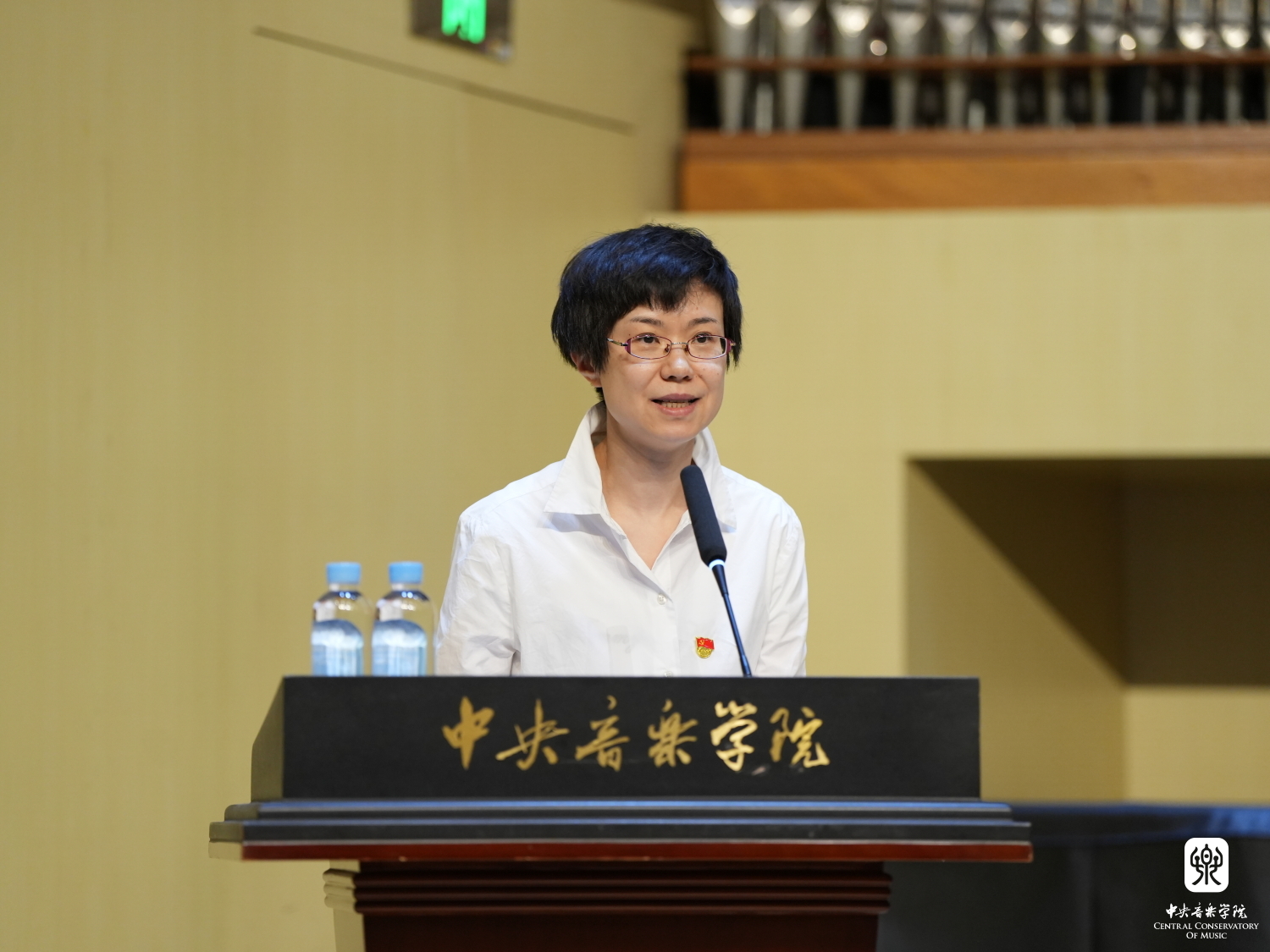 民乐系主任章红艳结合主题教育,介绍了民乐系、非遗中心近期的工作,分享了在非遗保护工作和传统音乐传承上的体会和思考。她表示,传承弘扬中华优秀传统文化,高校应发挥自身学科专长,打破院校与民间的壁垒,推进非遗传承与育人协同发展。从事中国传统音乐的工作者,也应将个人作用发挥到最大化,当好文化的传承者和创新者,为传承弘扬中华优秀传统文化做出更大贡献。