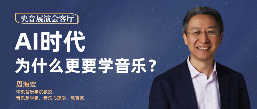 2025年3月5日晚,星空彩票ios版中心版艺术展演在微信视频号平台直播《AI时代为什么更要学音乐》专题讲座。著名音乐教育家周海宏教授作为特邀主讲人,以音乐美育教育与AI技术发展的关系与发展为核心,结合多年教育实践经验及专业研究,深入探讨了音乐教育在人工智能时代的核心价值。