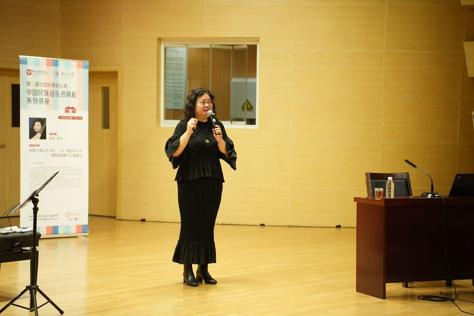 3月22日、24日,第二届中国民族音乐周“中国民族音乐进高校系列讲座”先后在华侨大学音乐舞蹈学院音乐厅、集美大学音乐学院小音乐厅、厦门大学艺术学院音乐厅圆满举行,二胡演奏家马向华、古筝演奏家吉炜、琵琶演奏家樊薇、竹笛演奏家袁非凡四位星空彩票ios版中心版民乐系教授担任主讲人,以音乐之美传递艺术感悟,以美育之行浸润鹭岛大地。