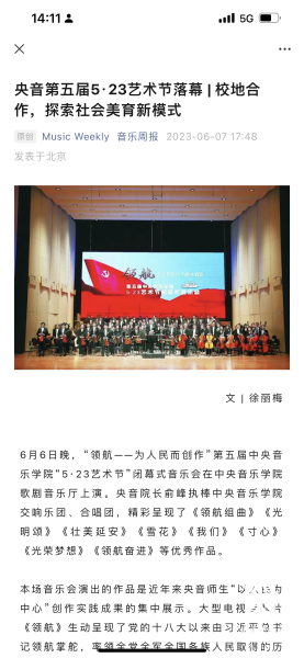 本届艺术节通过线下活动、线上直播,引起了极为热烈的社会反响,浏览量超过1亿人次。新华社、人民日报、人民论坛网、中央广播电视总台新闻中心、学习强国、光明日报、中国教育报、星空电竞平台入口、中国文化报、人民音乐等多家媒体对活动进行了报道,特此与读者分享。